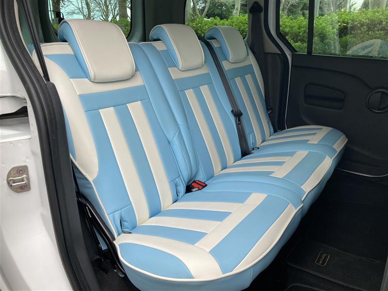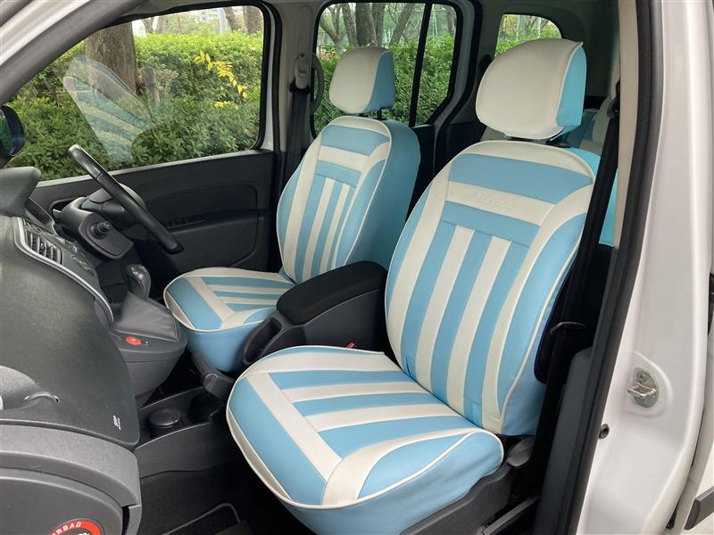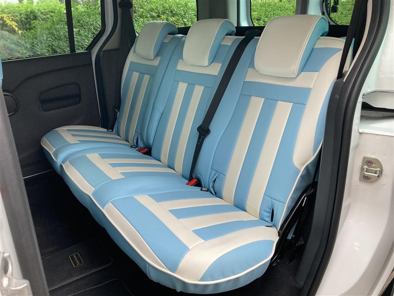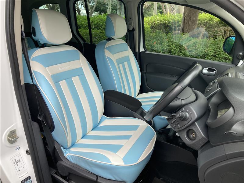 前後共にRenault純正OP:CABANAシート カスタマイズ ボーダーデザイン (No,57 Light Blue/No,55 White)