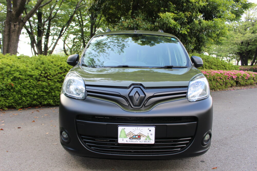 当店オリジナル【Kangoo No Mori Coloriage】【カングーの森コロリアージュ】JEEP純正色タンクでNEWペイントされた一台の入庫です☆エクステリア同色センターパネルやバンパーブラック塗装、MLJのスチールホイール“デイトナSSホイールをKNMコロリアージュでマットブラック施工などこだわり満載のオリジナルカングーです☆軍用車両に用いられるオリーブドラブに近いとても素敵なお色です☆
