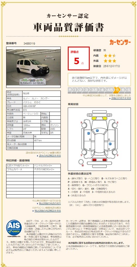 メンテナンスレコードも以下全ての全点検整備記録がルノー正規ディーラーにてなされた個体となります。