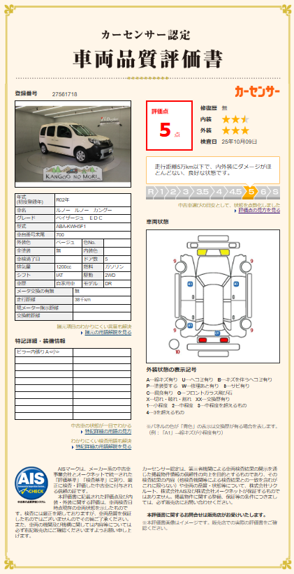メンテナンスレコードも全点検整備記録が出自のルノー正規ディーラーにてなされた個体となります。